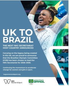 A historic milestone for gender equity in sport has been announced. The Brazil Olympic Committee (COB) has been selected to host the International Working Group (IWG) on Women & Sport Secretariat for the 2026–2030 quadrennial, marking the first time in the IWG’s history that the Secretariat will be based in South America. This decision follows a highly competitive international bid process and reflects Brazil’s growing leadership in advancing women and girls in sport across the region and globally.